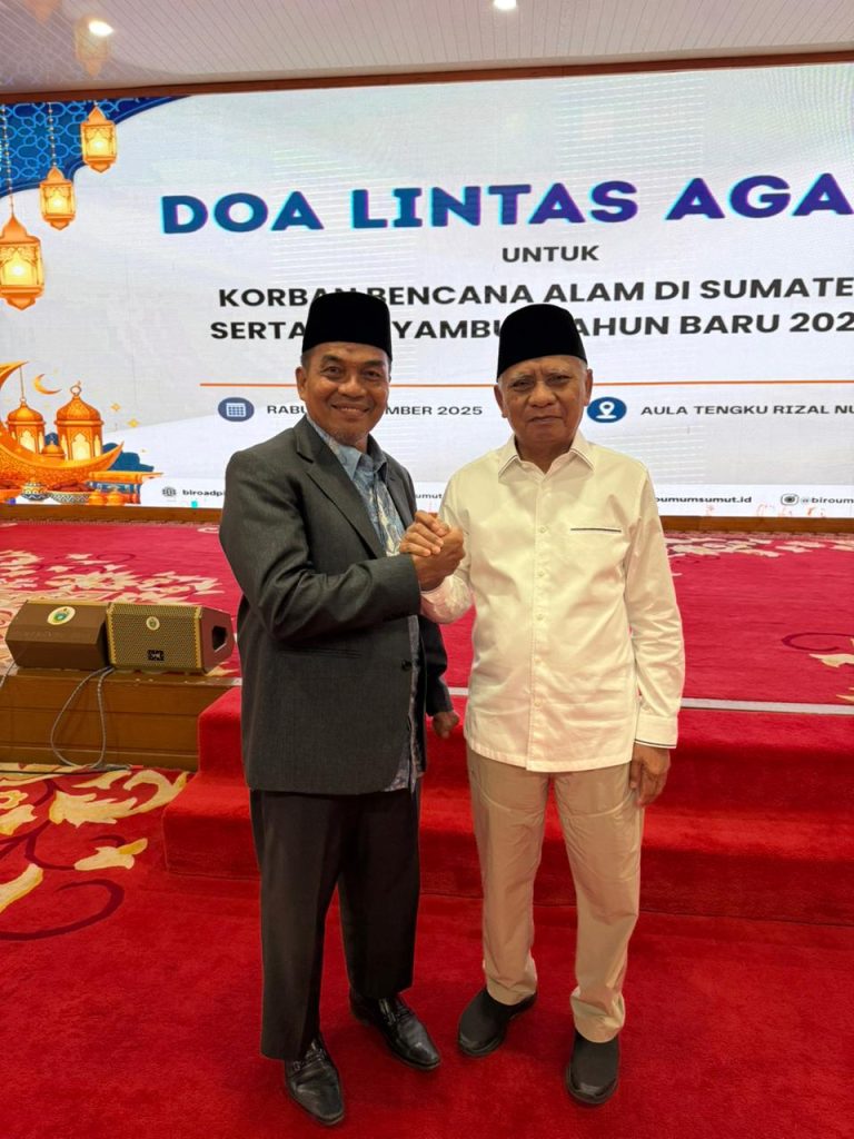 Pemerintah Provinsi (Pemprov) Sumatera Utara (Sumut) mengadakan doa lintas agama jelang memasuki tahun 2026. Kegiatan ini salah satunya dikhususkan untuk pemulihan bencana banjir dan tanah longsor di Sumut.